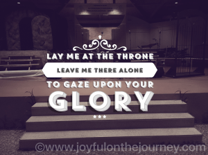 So, please, take me to the King. Lay me the throne. Leave me there alone. My heart is torn in pieces over my sin and in awe of His goodness. I just want to gaze upon His glory and sing to Him. The audience of One. Take me to the King.